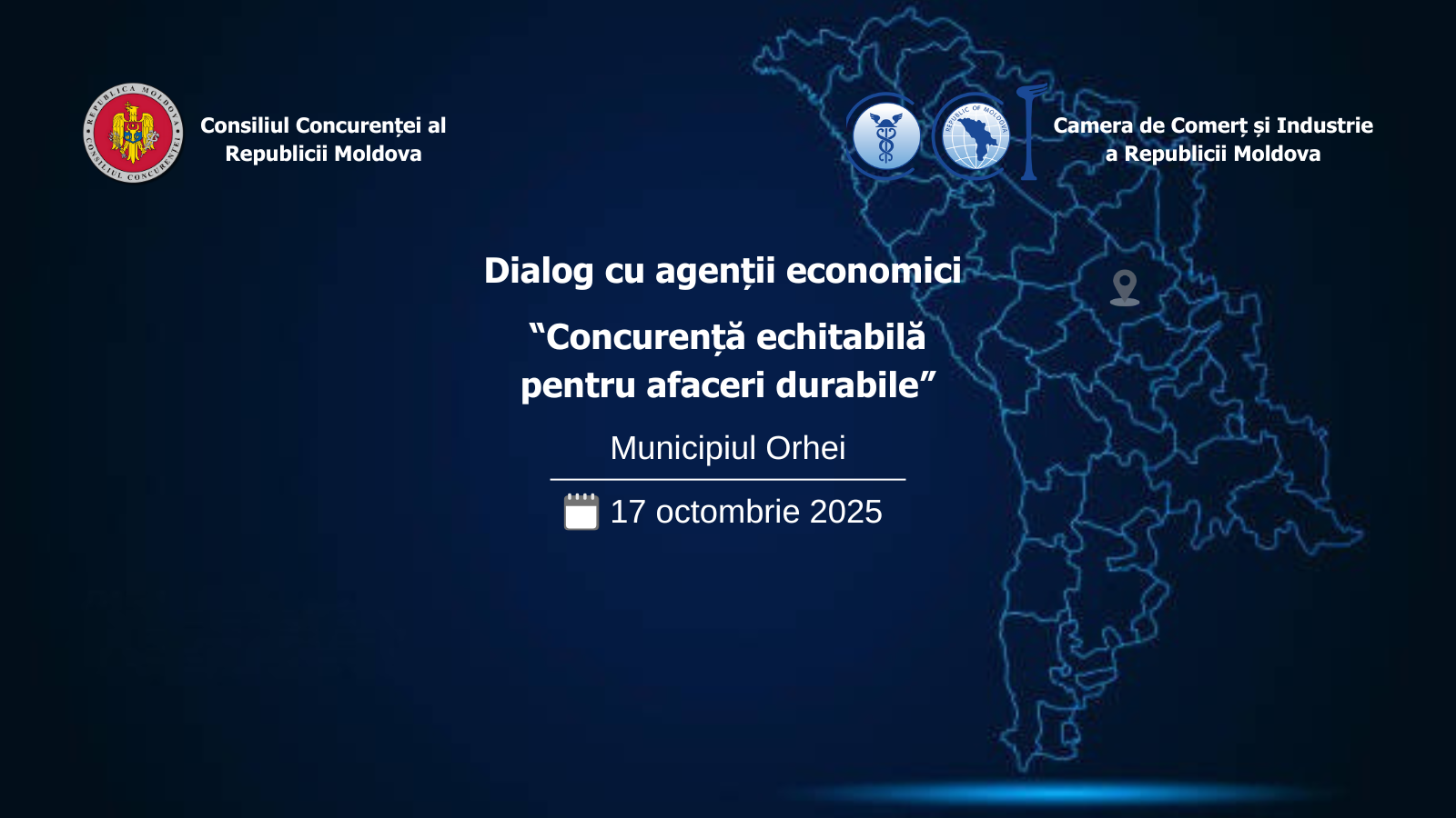 Consiliul Concurenței și Camera de Comerț și Industrie a Republicii Moldova vă invită la o întâlnire cu mediul de afaceri local, care va avea loc în municipiul Orhei.
